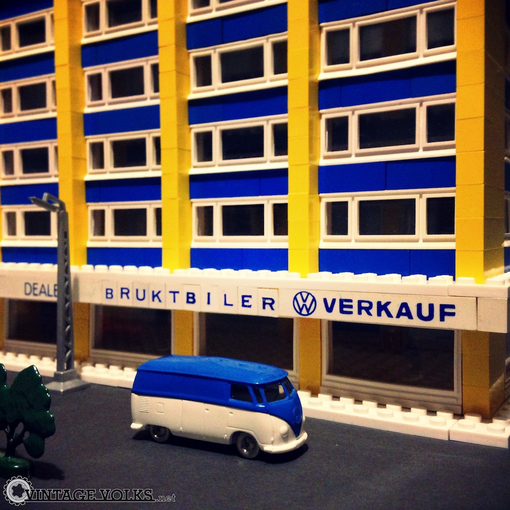 Prendi tutti i pezzi LEGO che possiedi fin da quando eri bambino (...tanti ...troppi!), aggiungici un po' di fantasia, cerca qualche spunto per realizzare qualcosa di quasi mastodontico e... voilà! Ovviamente le vecchie Volkswagen raffreddate ad aria non possono mancare e quindi le mettiamo come contorno dell'elemento principale: una concessionaria VW in stile vintage e nordeuropeo.